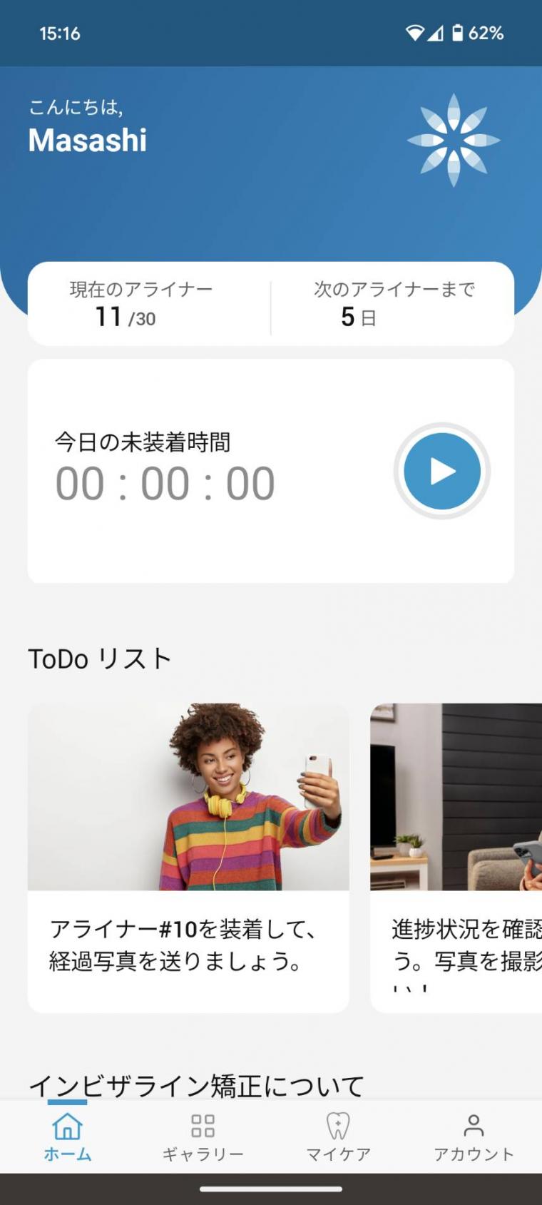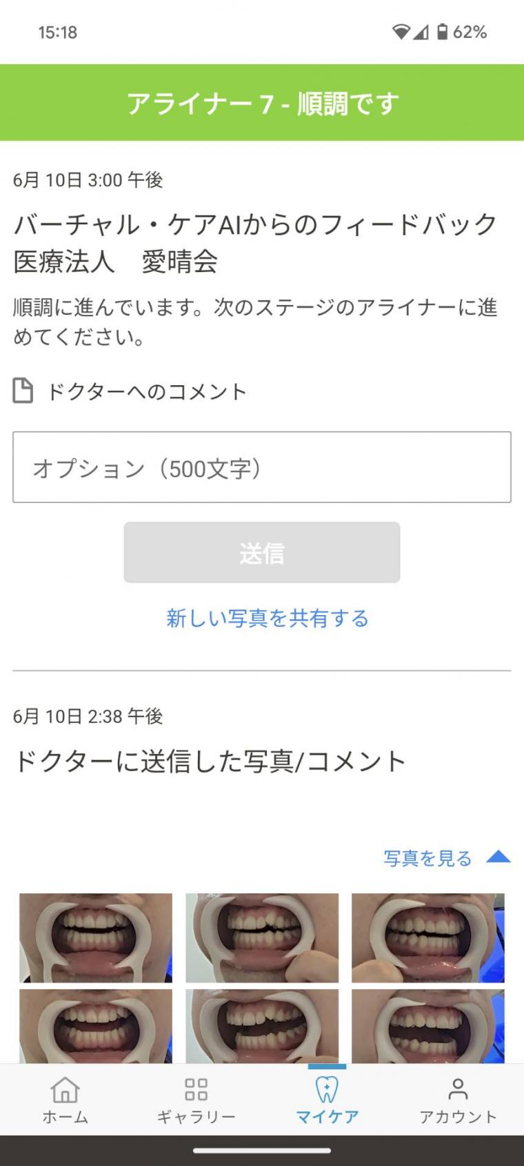 (ま)ですが、このバーチャル・ケアは「マイインビザライン」というアプリを利用し、マウスピースを変えるごとに写真を送ることで、家にいながら先生のチェックが可能!というわけです。